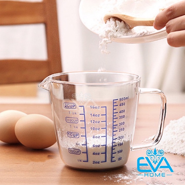 - Cốc đo lường 500 ml được làm từ chất liệu thủy tinh siêu dày, chịu nhiệt tốt.