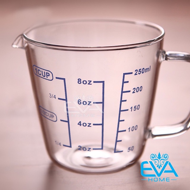 - Cốc đo lường 250 ml được làm từ chất liệu thủy tinh siêu dày, chịu nhiệt tốt.