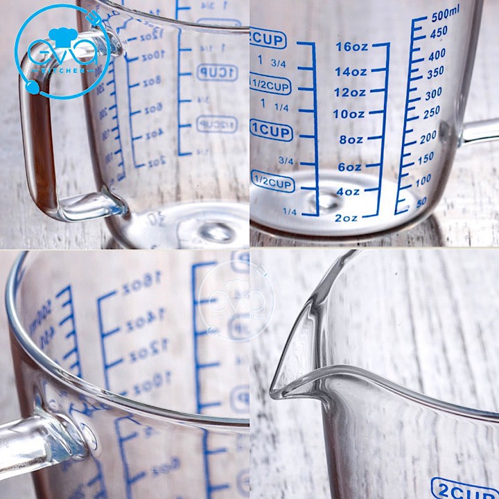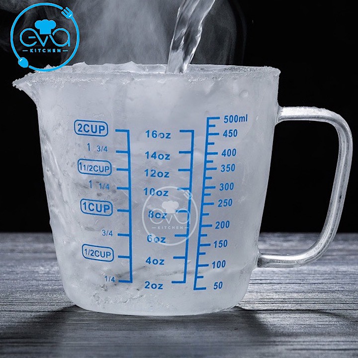 - Cốc đo lường 500 ml được làm từ chất liệu thủy tinh siêu dày, chịu nhiệt tốt.