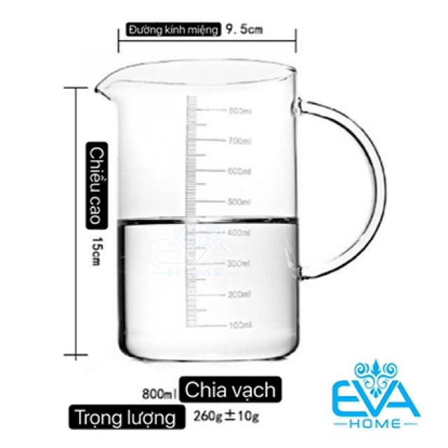 - Cốc đo lường 800 ml được làm từ chất liệu thủy tinh siêu dày, chịu nhiệt tốt.