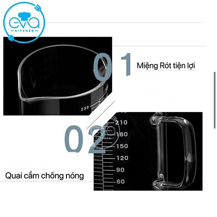 - Cốc đo lường 800 ml được làm từ chất liệu thủy tinh siêu dày, chịu nhiệt tốt.