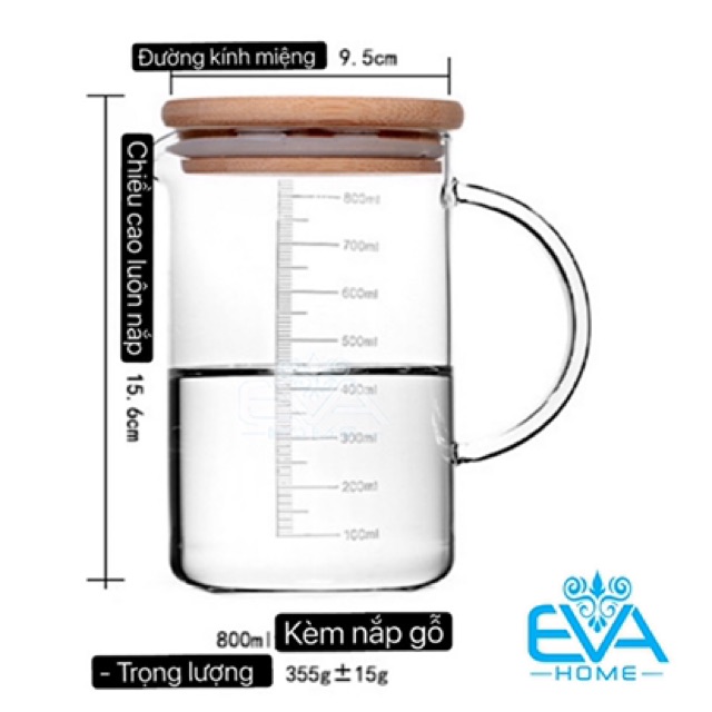 Ly Thuỷ Tinh Chịu Nhiệt Chia Vạch Đo Lường 800 Ml Kèm Nắp Gỗ Đậy