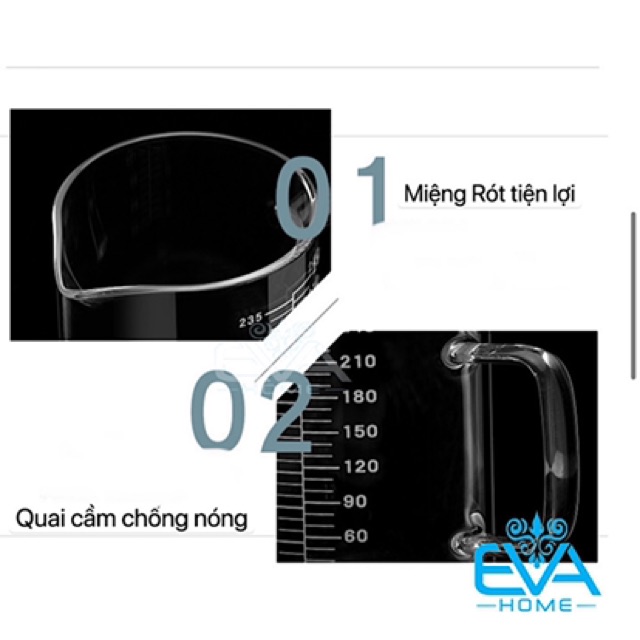 - Cốc đo lường 800 ml được làm từ chất liệu thủy tinh siêu dày, chịu nhiệt tốt.