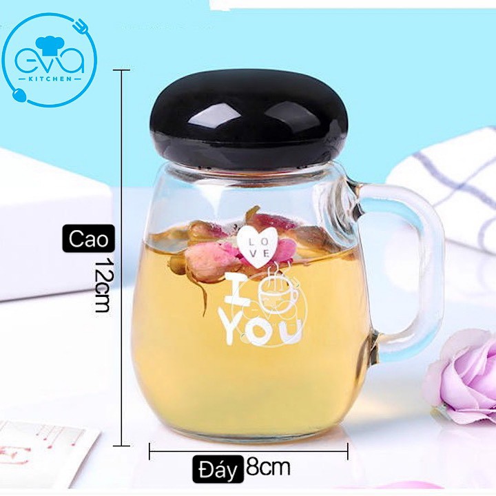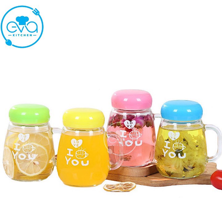*** Điểm nổi bật : ly thuỷ tinh có quai và nắp đậy