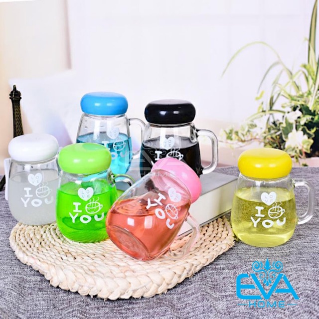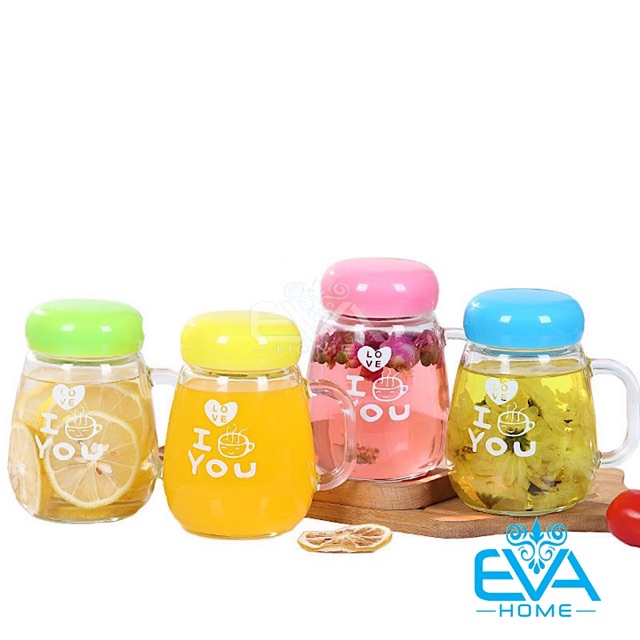 *** Điểm nổi bật : ly thuỷ tinh có quai và nắp đậy