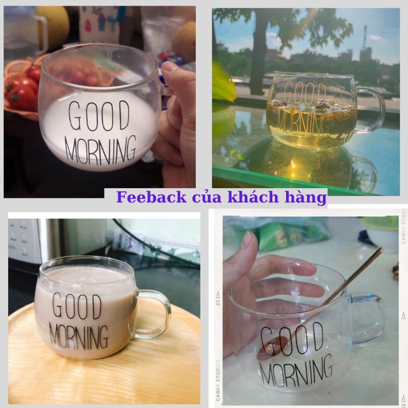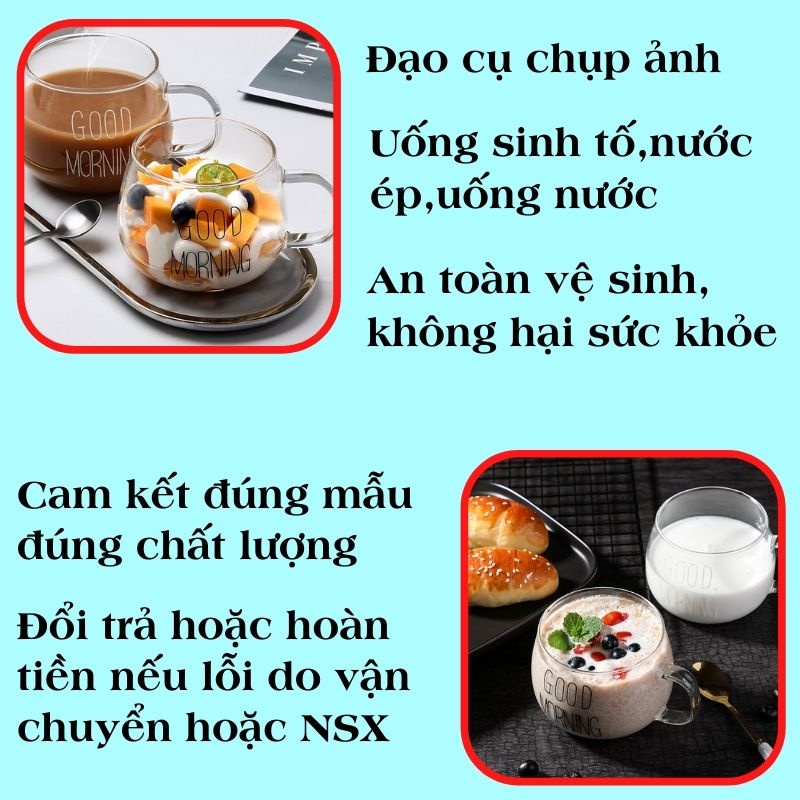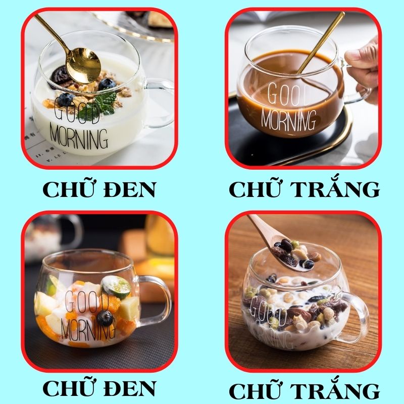 Ly thủy tinh dễ thương uống nước cute GOOD MORNING 350 ml Cốc thủy tinh chịu nhiệt có quai ABUSTORE H19* Đôi điều về shop: