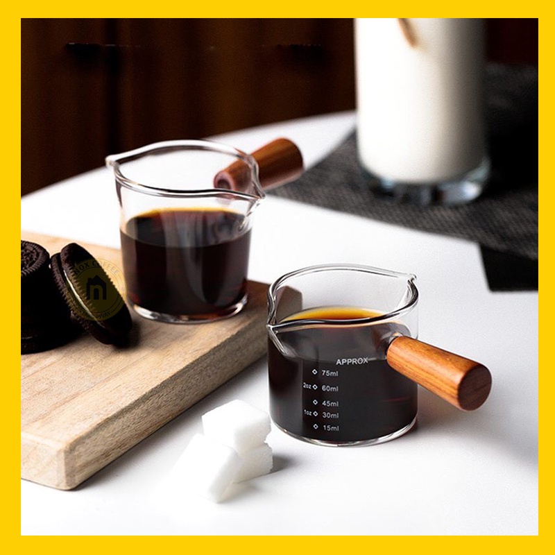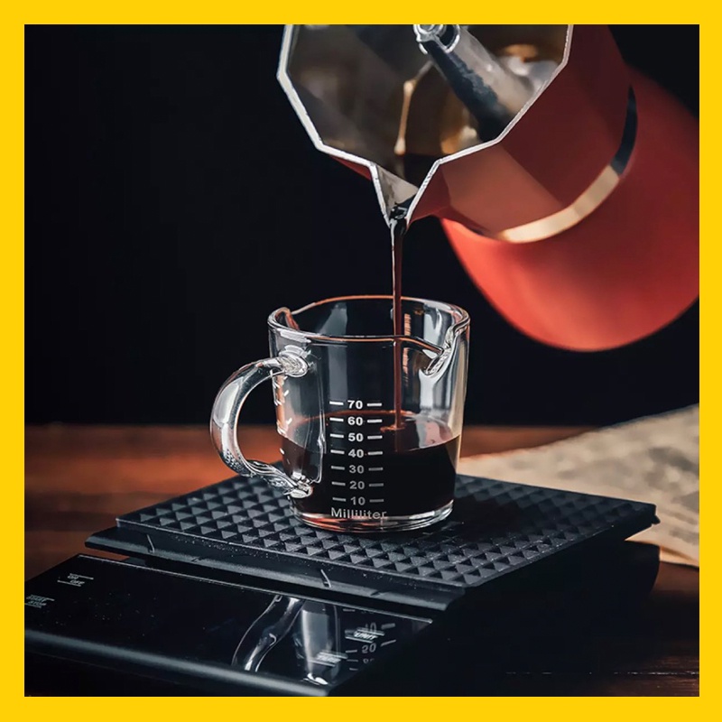 + Ly thủy tinh chia vạch Ml có miệng rót đôi được vát nhỏ giúp quá trình đong pha rót lượng cà phê, sữa, đường cực kỳ tiện dụng, kiểm soát tốt định lượng trong quá trình pha chế