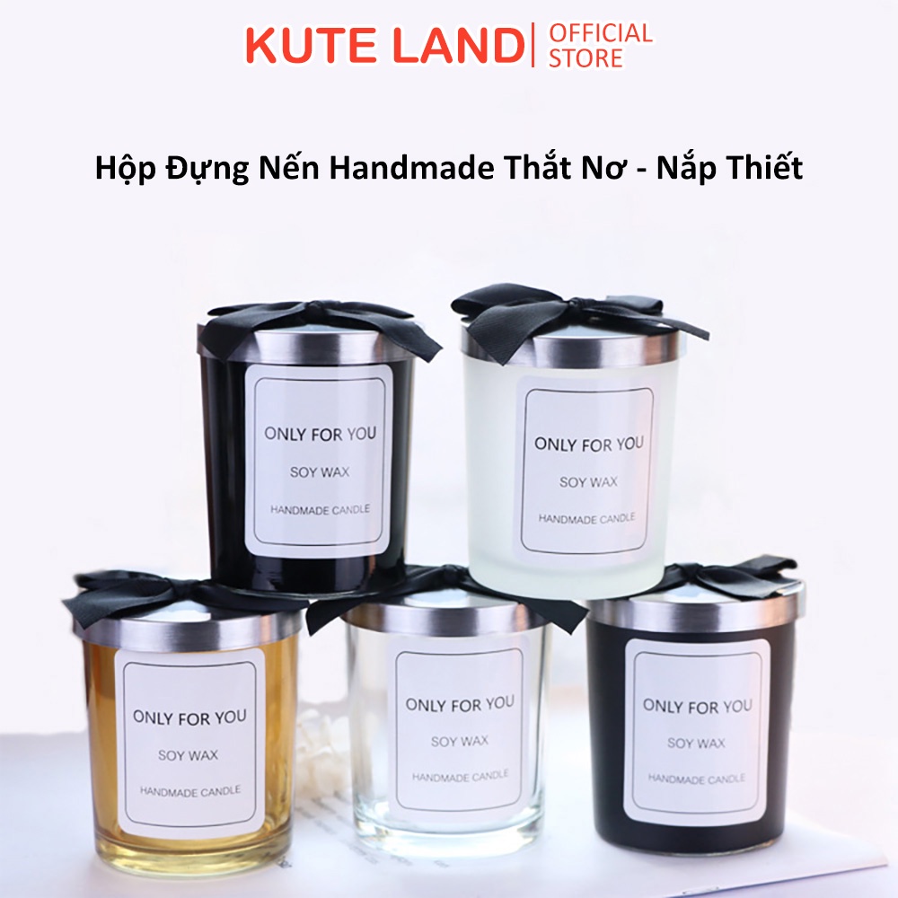 Ly Thủy Tinh Nắp Thiết Có Nơ Dùng Để Đựng Làm Nến Thơm