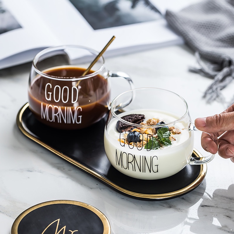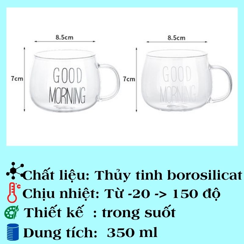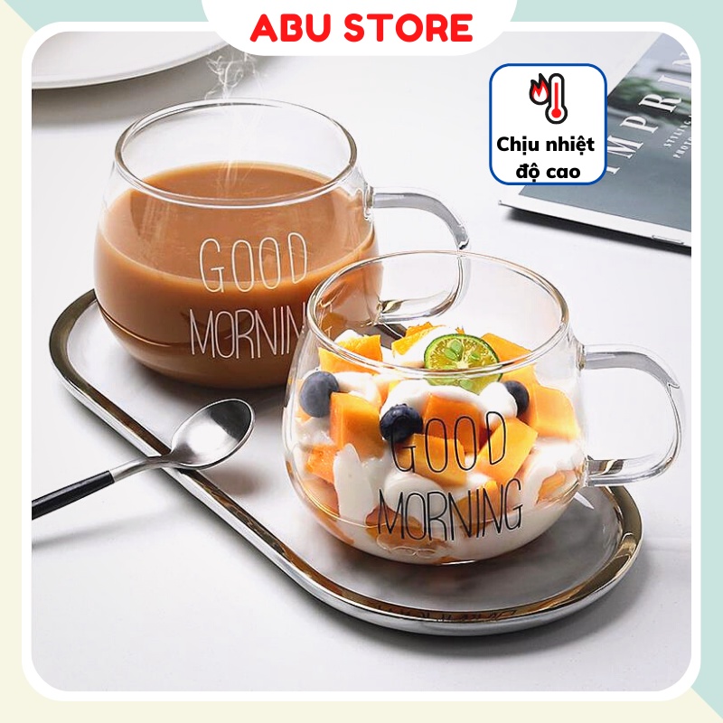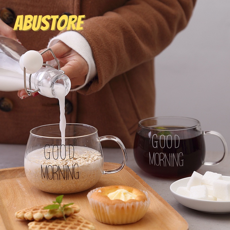 Cốc thủy tinh cute dễ thương GOOD MORNING Ly thủy tinh 350ml cao cấp chịu nhiệt của nhà ABUSSTOREThời gian giao hàng dự kiến cho sản phẩm này là từ 5 -7 ngày