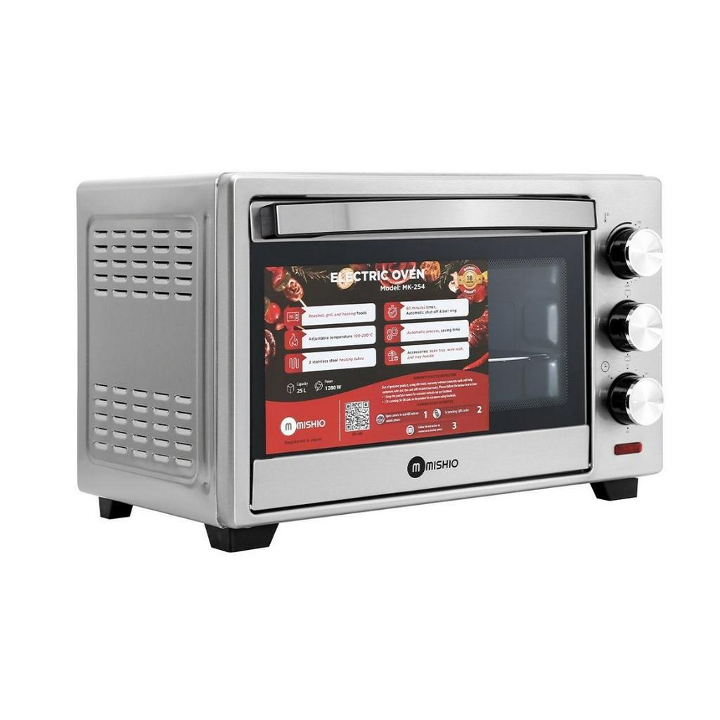 - Dung tích lò nướng Mishio MK254 đạt 25 lít, vì vậy đáp ứng nhu cầu sử dụng hằng ngày của đại đa số các kiểu gia đình Việt, từ 2-6 thành viên.