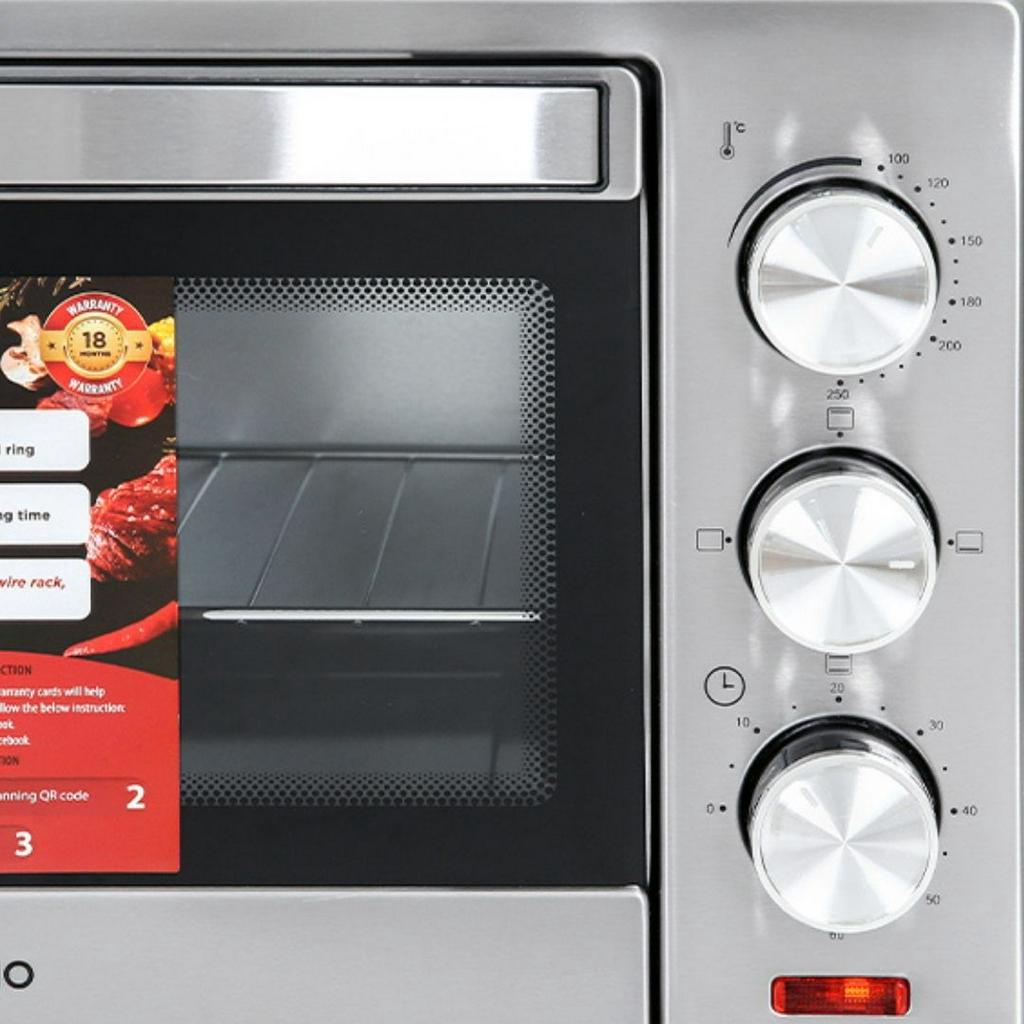 - Khoan lò và các chi tiết bên trong làm bằng chất liệu thép không gỉ sáng bóng, dễ chùi rửa sau khi nướng. Cửa lò làm bằng chất liệu kính cường lực, chịu được nhiệt độ cao và chống va đập, tăng thêm độ bền cho chiếc lò nướng Mishio này.