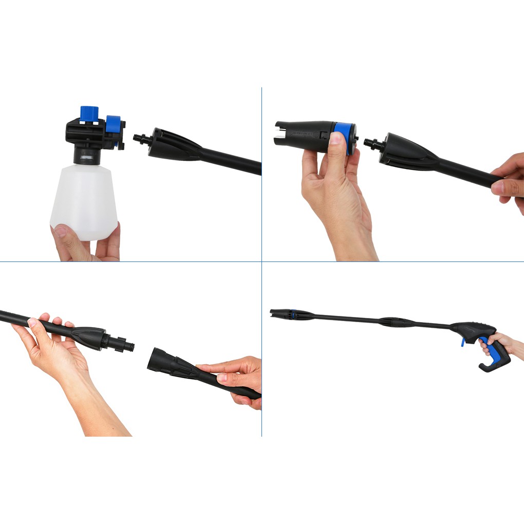 Công suất máy rửa xe (máy phun xịt rửa) đạt 1400 W tạo áp lực nước tối đa lên đến 82 bar, cho hiệu quả đánh bay các vết bụi, bẩn trên vỏ xe, dưới gầm xe chỉ trong khoảng 5 - 10 phút xịt rửa. Ngoài ra, máy còn phù hợp để làm sạch sân vườn, đồ đạc trong nhà,...