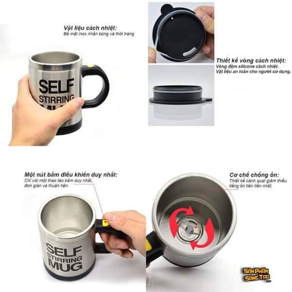 - Ly cà phê pha tự động SELF MUG… khuấy nước không cần thìa. Bởi vì động cơ hoạt động bằng 2 viên pin AA.