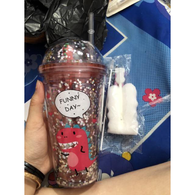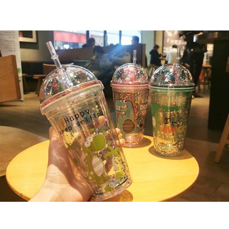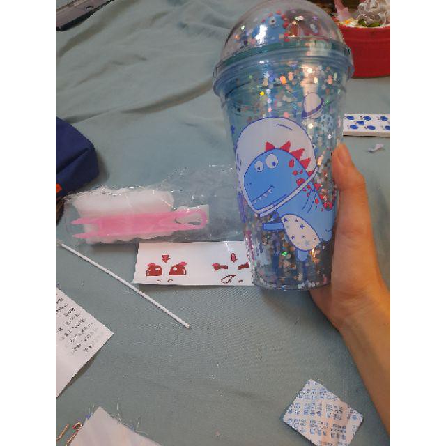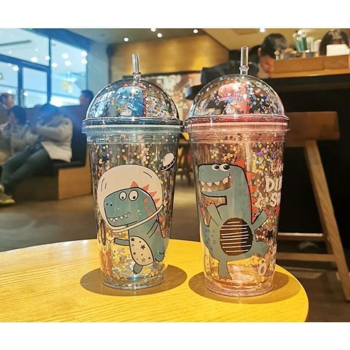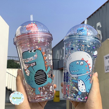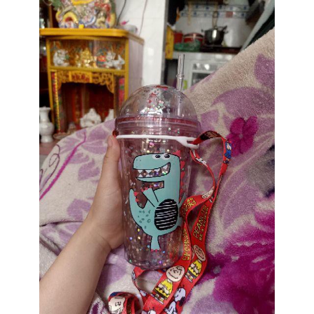 Ly Uống Nước Hình Khủng Long Màu Sắc Dễ ThươngBình có kèm óng hút tiện dụng