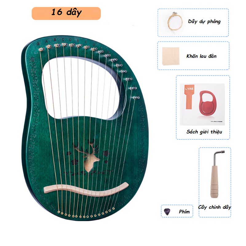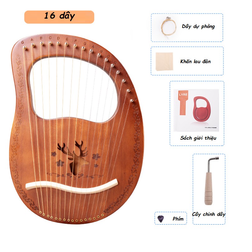 [Lyre 16 Dây] Đàn Lyre 16 dây BH90968-MOLIN Harp đầy đủ phụ kiện kèm theo như hình âm vang hay trong , ấmBộ sản phẩm gồm: