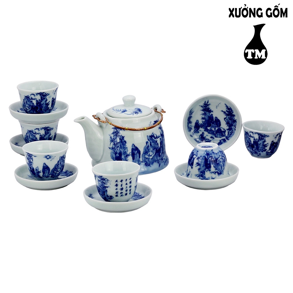 Nhà cửa & Đời sống > Dụng cụ nhà bếp > Dụng cụ pha trà, cà phê || Bộ ấm chén men lam giả vuốt Trúc Lâm Thất Hiền Xưởng Gốm TM Bát Tràng (bộ bình uống trà, bộ bình trà)Còn hàng