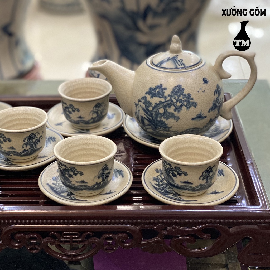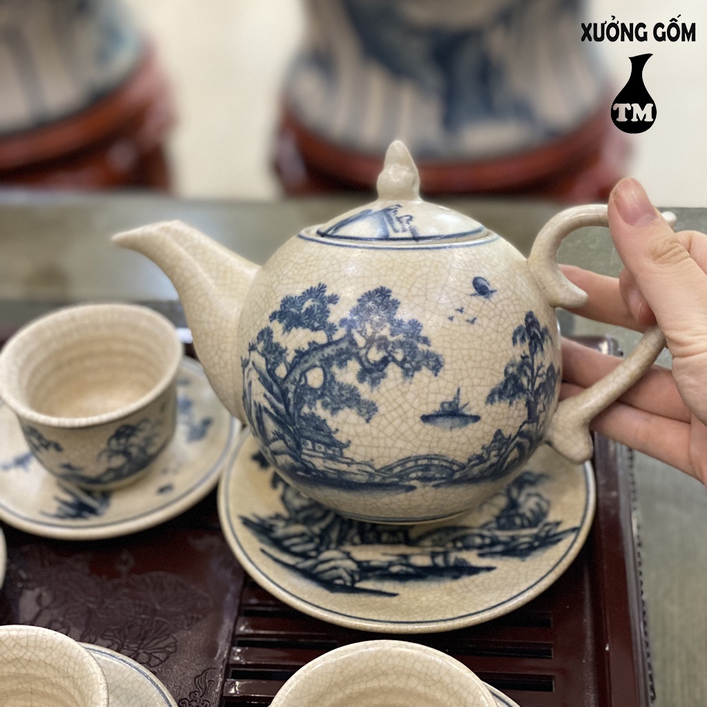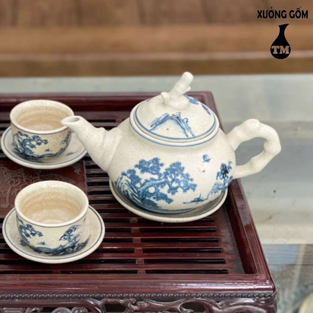 Nhà cửa & Đời sống > Dụng cụ nhà bếp > Dụng cụ pha trà, cà phê || Bộ Ấm Chén Men Rạn Xưởng Gốm TM Bát Tràng Họa Tiết Vẽ Tùng Chùa – 500MLCòn hàng