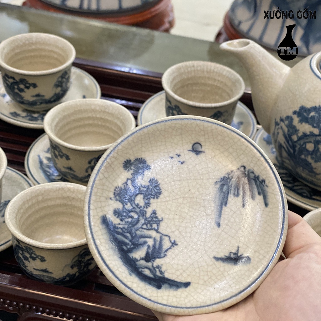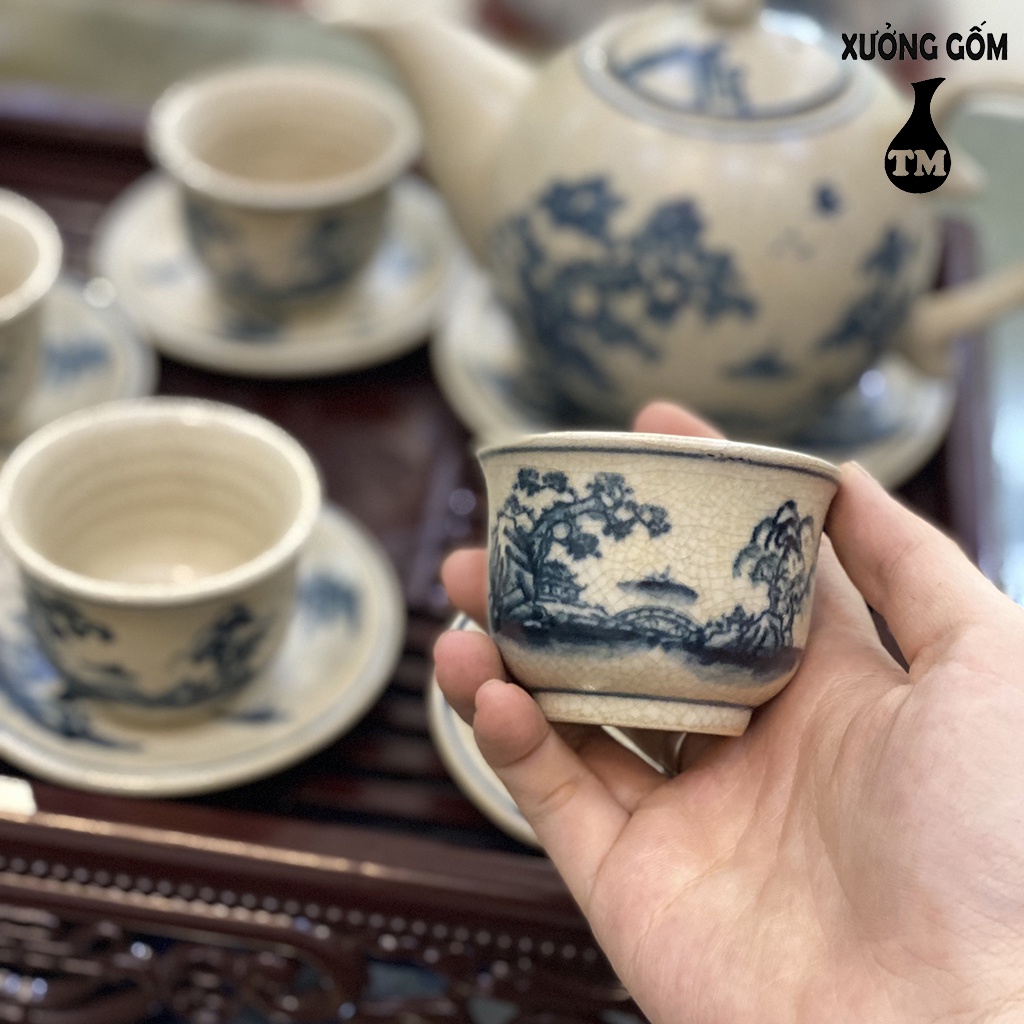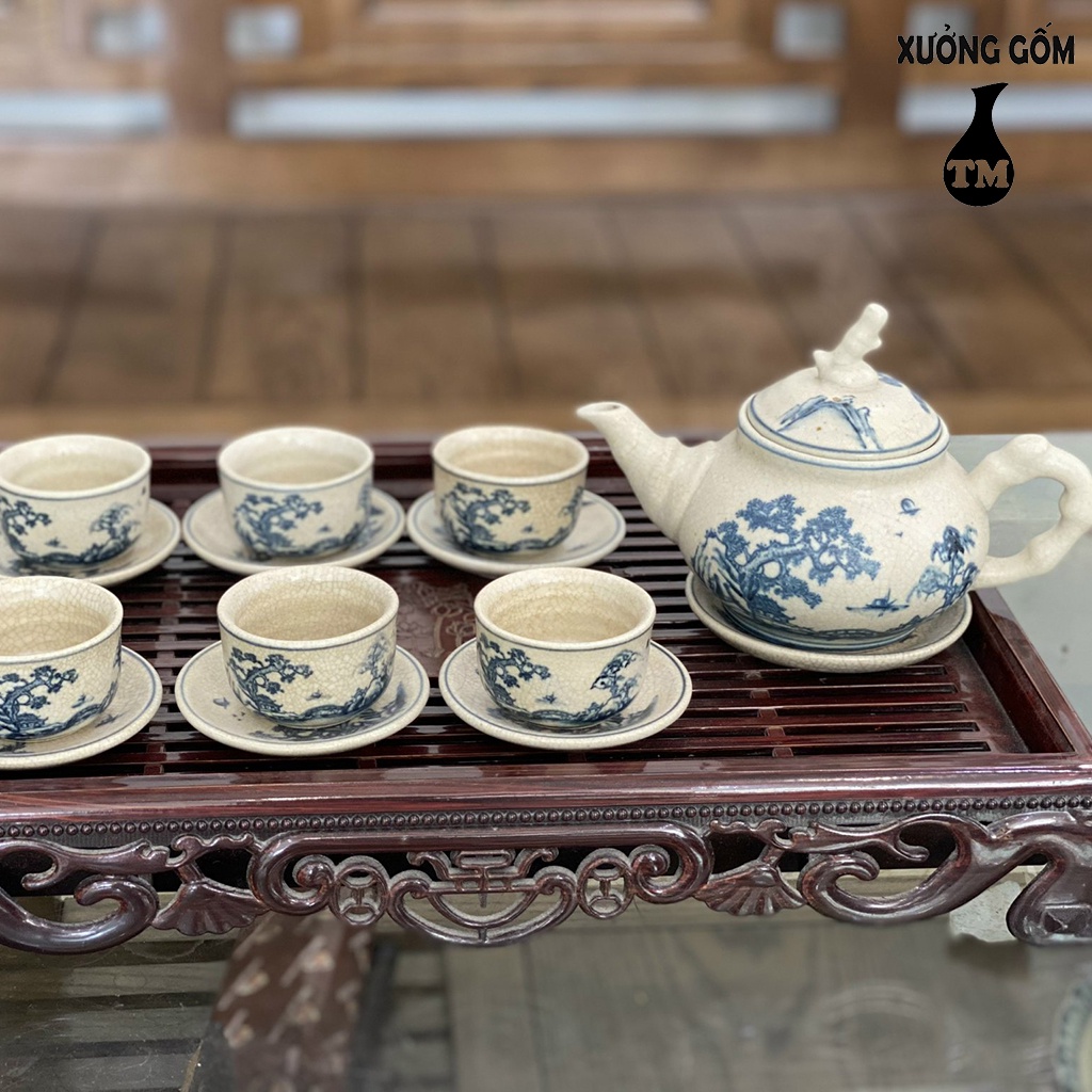 Nhà cửa & Đời sống > Dụng cụ nhà bếp > Dụng cụ pha trà, cà phê || Bộ Ấm Chén Men Rạn Xưởng Gốm TM Bát Tràng Họa Tiết Vẽ Tùng Chùa – 500MLCòn hàng
