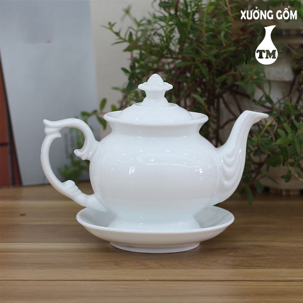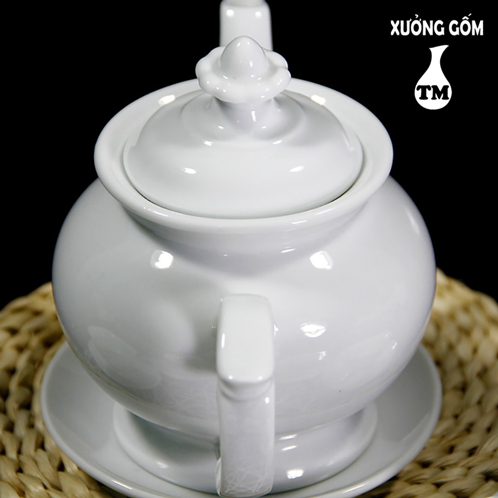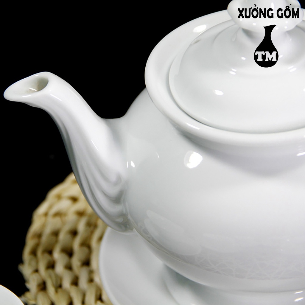 Bộ Ấm Chén Men Trắng Cát Tường - Bộ Bình Trà Cao Cấp, Bộ Ấm Trà Đạo, Bộ Ấm Trà Đẹp Xưởng Gốm TM Bát Tràng