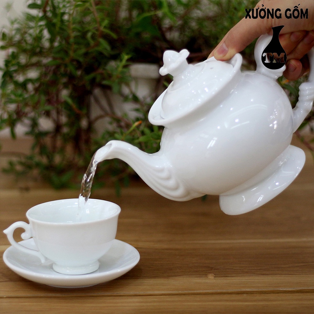 Nhà cửa & Đời sống > Dụng cụ nhà bếp > Dụng cụ pha trà, cà phê || Bộ Ấm Chén Men Trắng Cát Tường - Bộ Bình Trà Cao Cấp, Bộ Ấm Trà Đạo, Bộ Ấm Trà Đẹp Xưởng Gốm TM Bát TràngCòn hàng