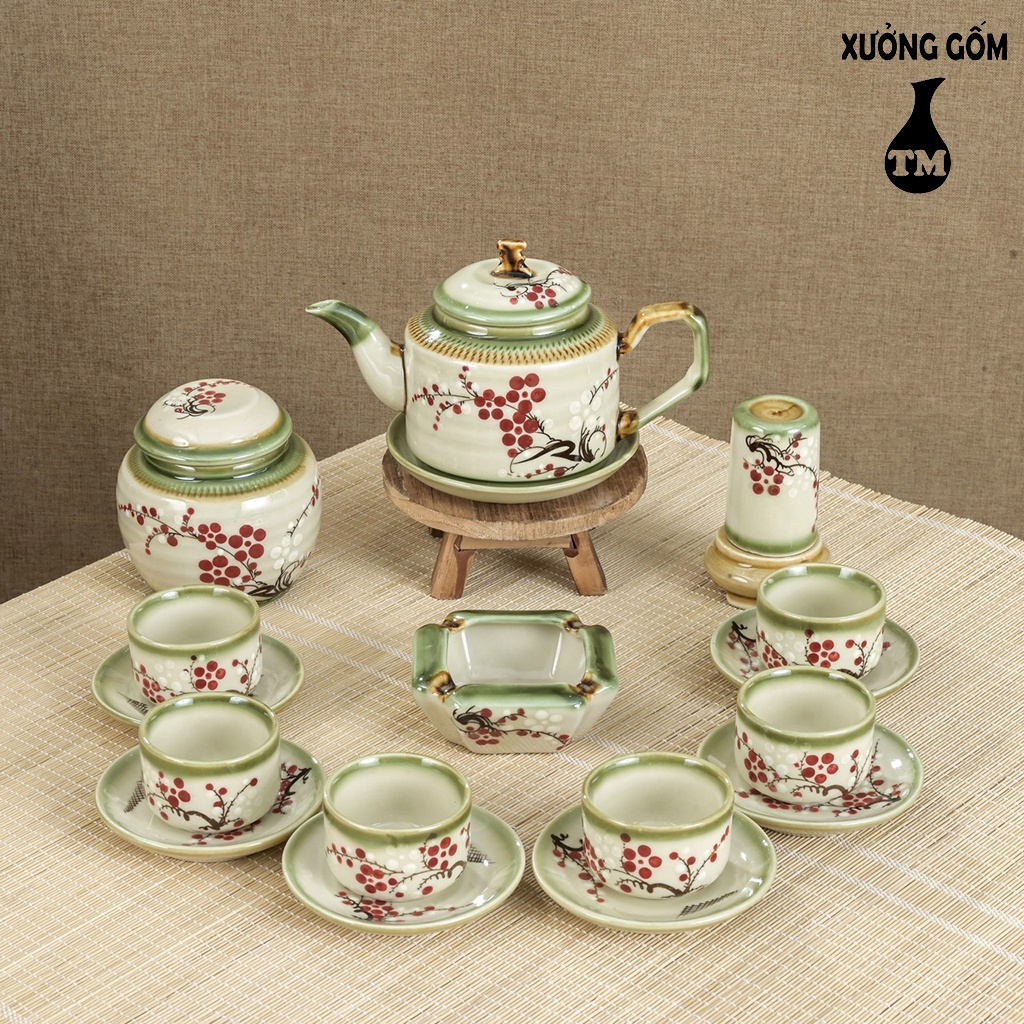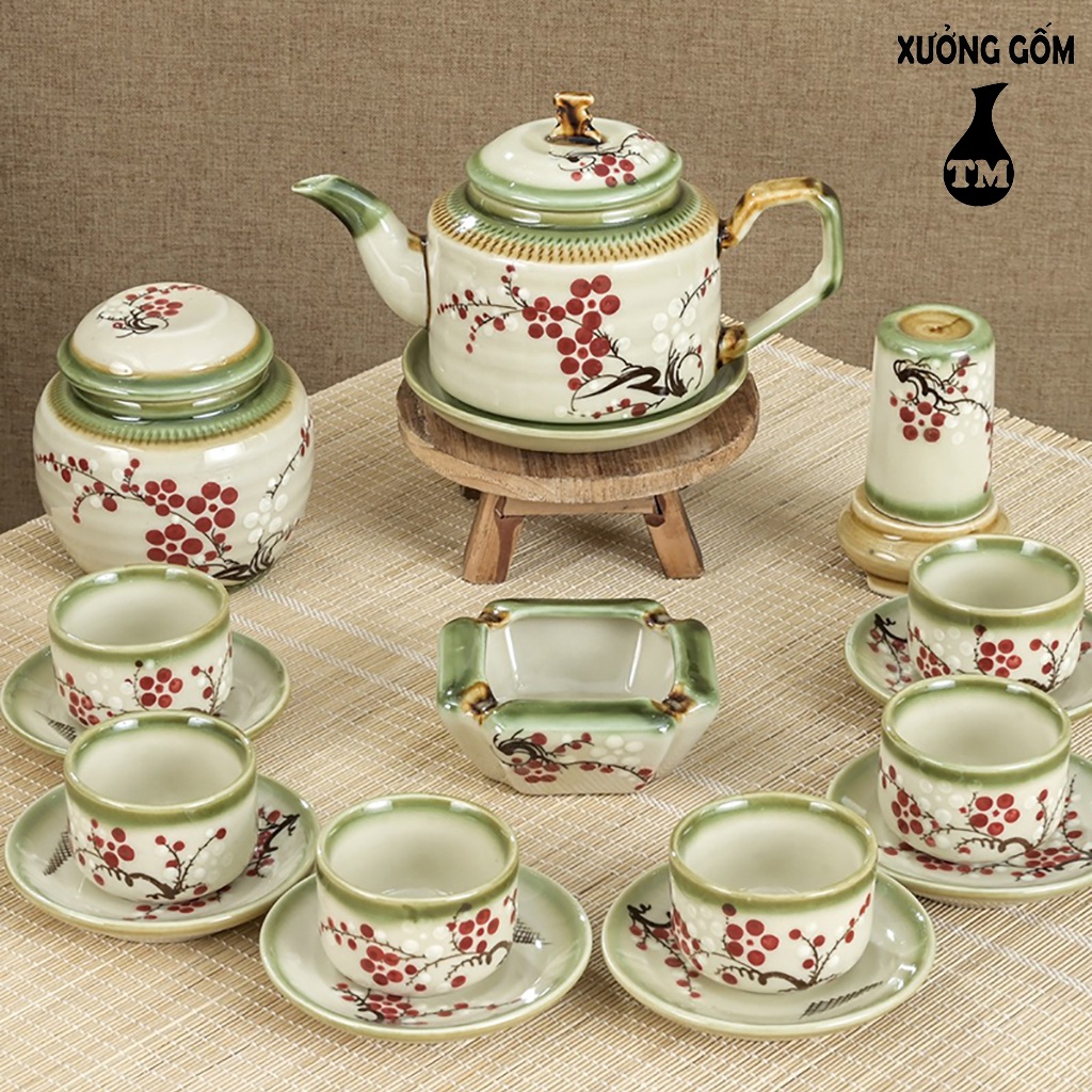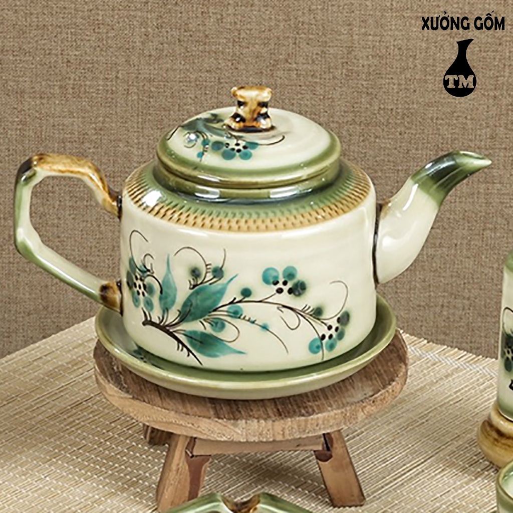 Bộ Ấm Chén Pha Uống Trà Xưởng Gốm TM Bát Tràng Họa Tiết Vẽ Tay – Dáng Ấm Vai Vuông Độc Đáo (Chưa bao gồm phụ kiện)