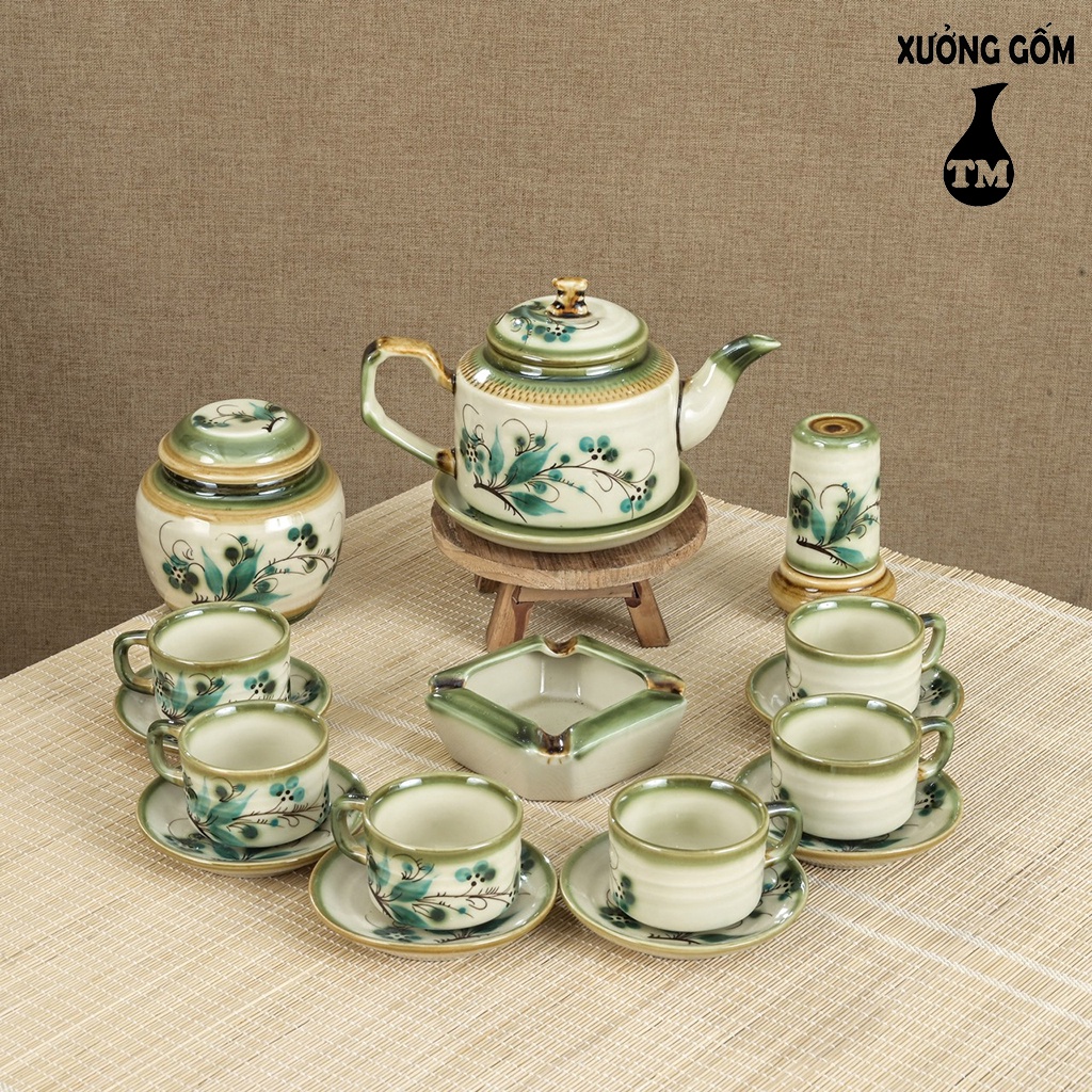 Nhà cửa & Đời sống > Dụng cụ nhà bếp > Dụng cụ pha trà, cà phê || Bộ Ấm Chén Pha Uống Trà Xưởng Gốm TM Bát Tràng Họa Tiết Vẽ Tay – Dáng Ấm Vai Vuông Độc Đáo (Chưa bao gồm phụ kiện)Còn hàng
