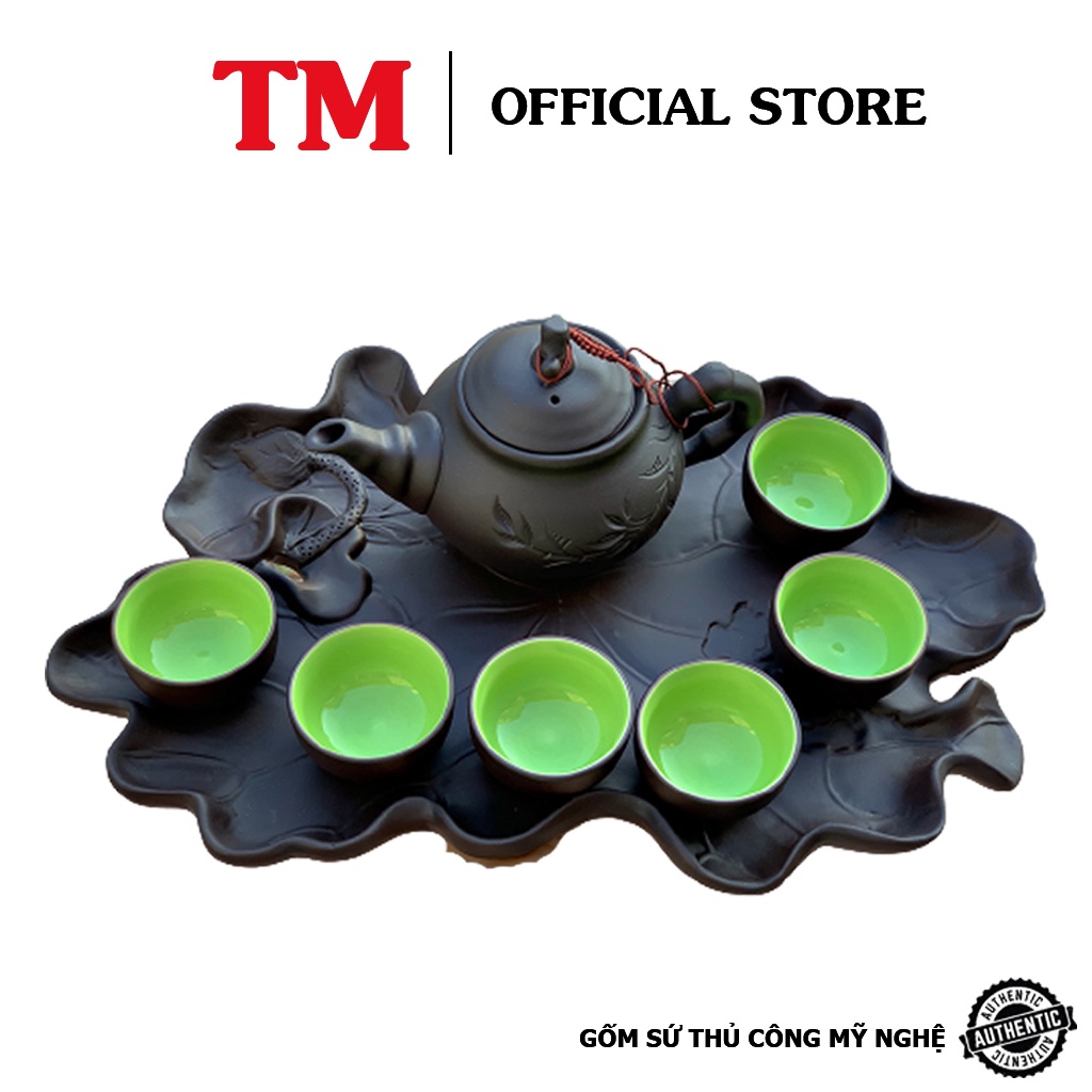 Bộ Ấm Chén Tử Sa Xưởng Gốm TM Bát Tràng - Ấm Vẽ Trúc – Khay Sen Đen Độc Đáo