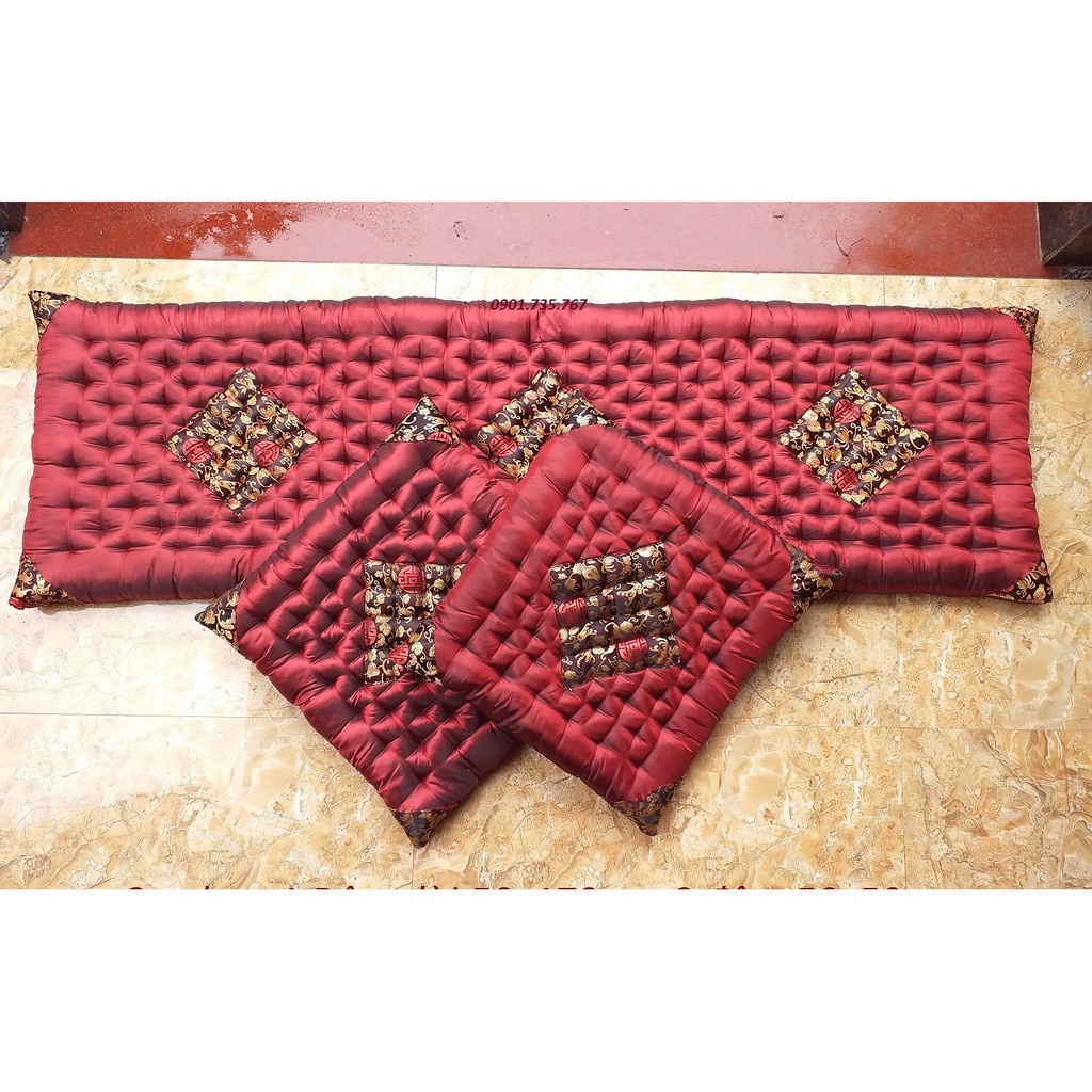 - Bộ đệm ghế gỗ, nệm lót ghế gồm 1 dài 2 ngắn có 3 kích thước sau :