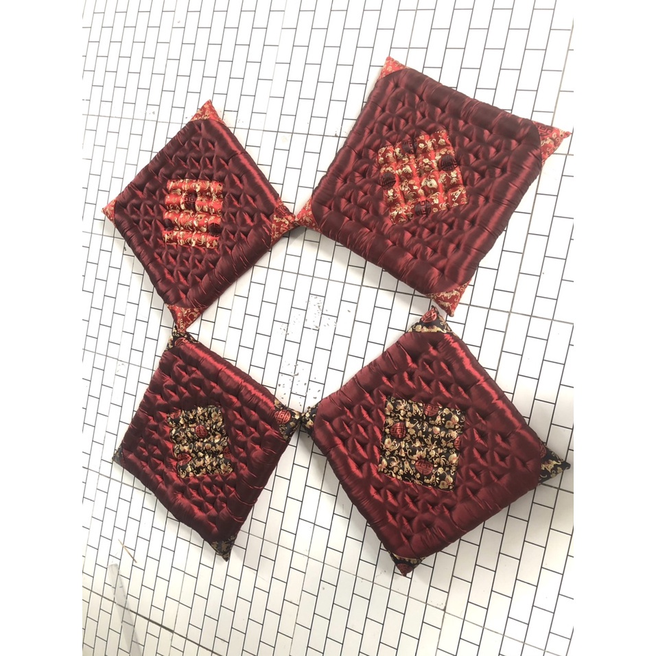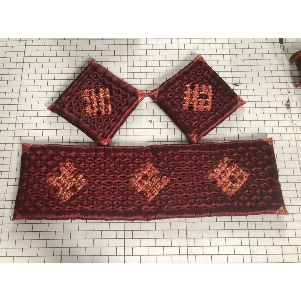 Bộ đệm ghế gỗ đính tay thủ công gồm 1 dài 2 ngắn Màu sắc đa dạng phù hợp với mọi không gian bàn ghế hoặc ngồi bệt tùy ý