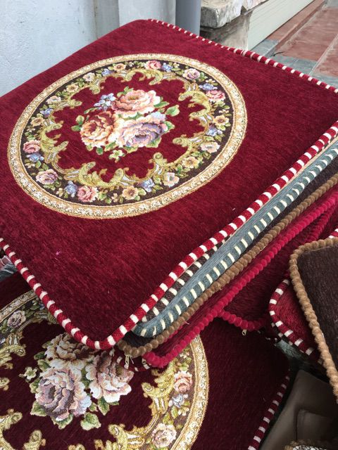 Chất liệu thô nhung hoa văn. Gồm 3 lớp. 1 mặt gấm , 1 lớp bông , 1 lớp lót trống trượt. Có thể tháo ra giặt dễ dàng. Sang trọng và lịch lãmGiá $SYMP