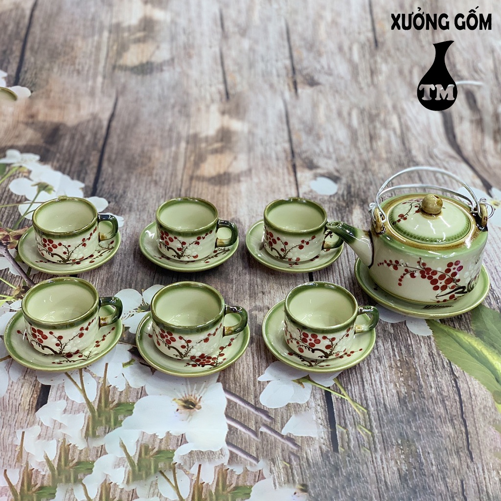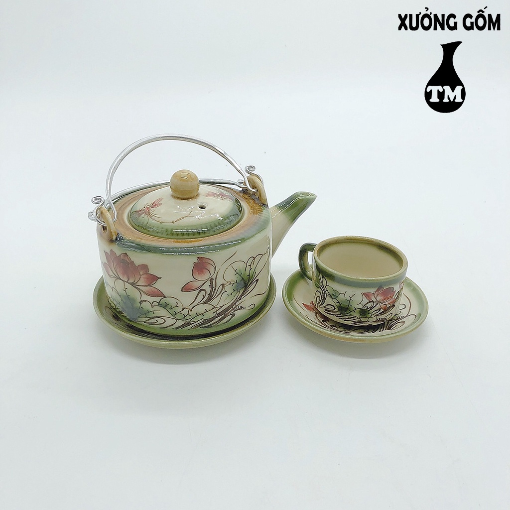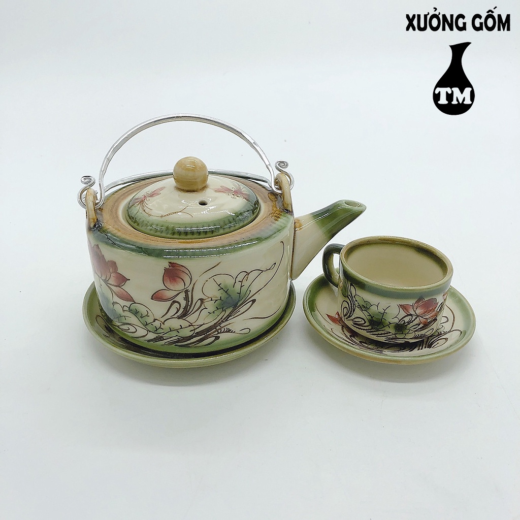 Bộ Ấm Pha Trà Dáng Vại Họa Tiết Vẽ Tay Xưởng Gốm TM Bát Tràng( bộ bình trà, uống trà)
