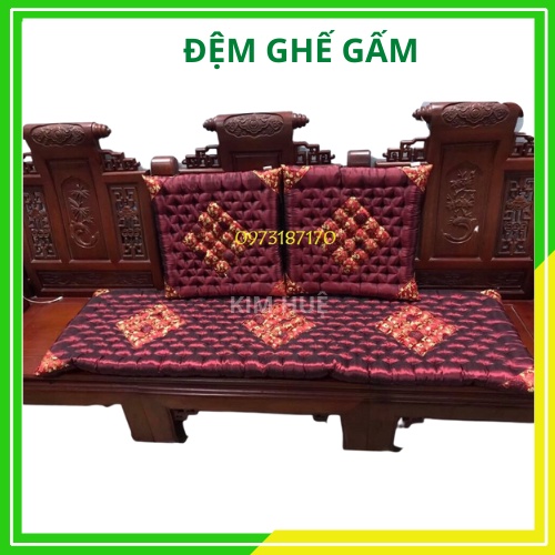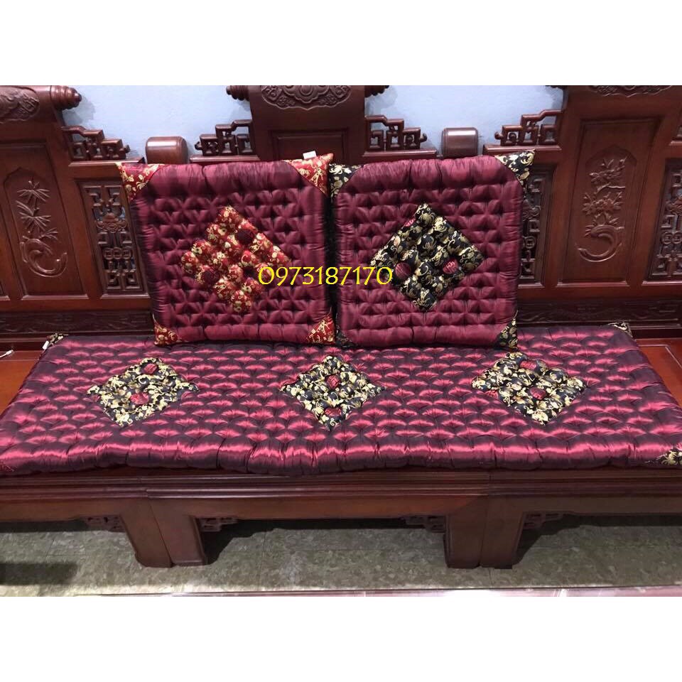 Bộ đệm thảm trải ghế gấm lụa đẹp 3 món trần bông thêu lụa (2 vuông 1 dài)Chuyên sỉ lẻ chăn ga gối đệm, bộ trải ghế, gối tựa lưng cao cấp
