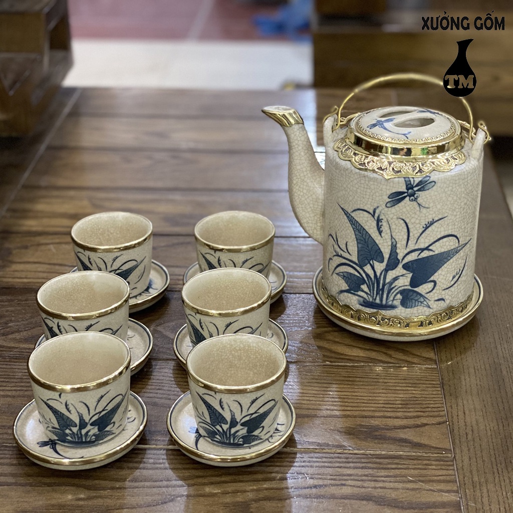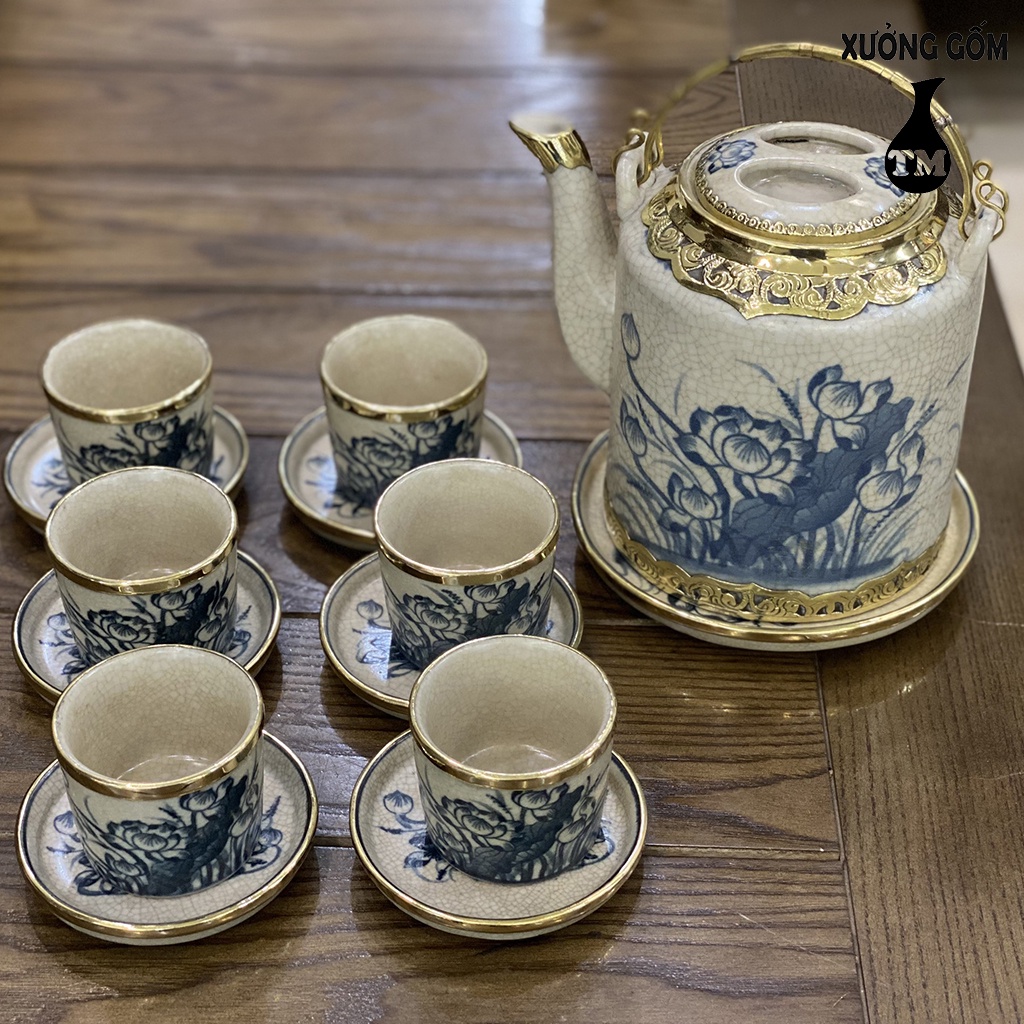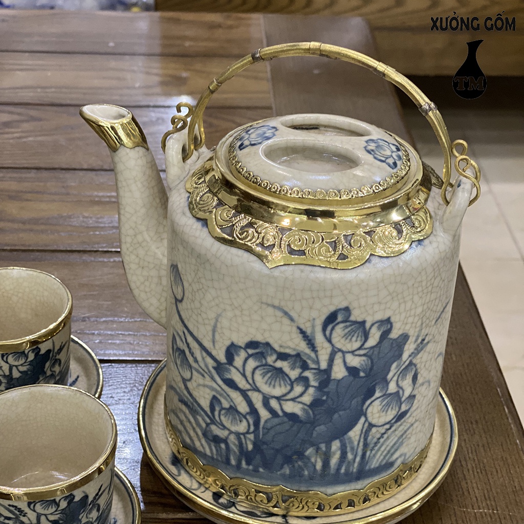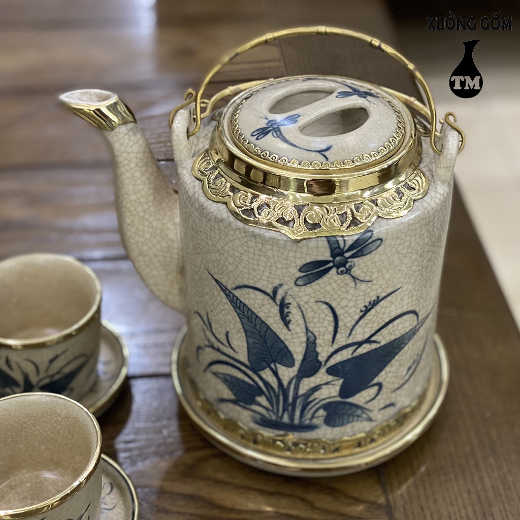Nhà cửa & Đời sống > Dụng cụ nhà bếp > Dụng cụ pha trà, cà phê || Bộ Ấm Tích Pha Uống Trà Xưởng Gốm TM Bát Tràng Men Rạn Bọc Đồng Họa Tiết Vẽ Tay Cao Cấp – Dung Tích 1LCòn hàng