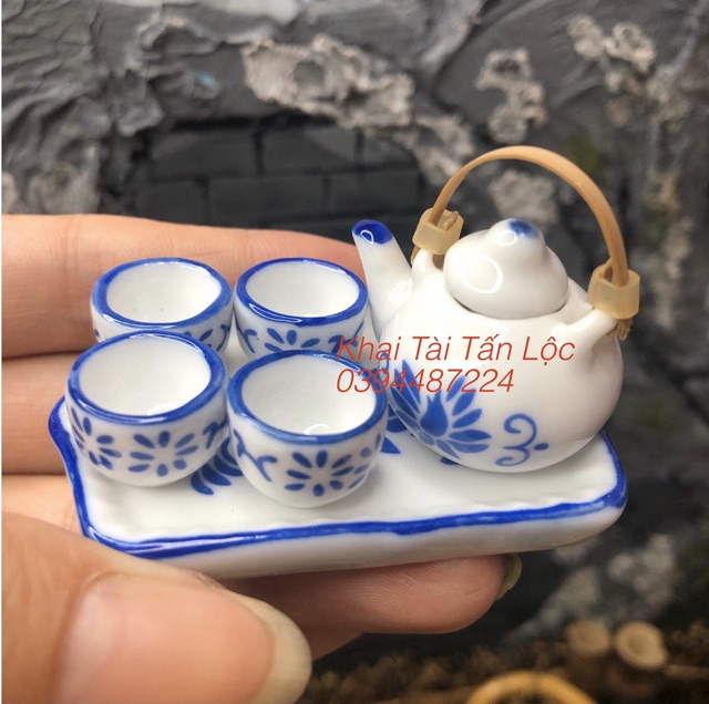 Bộ ấm trà gốm sứ tí hon trang trí nhà búp bê , tiểu cảnh bàn trà