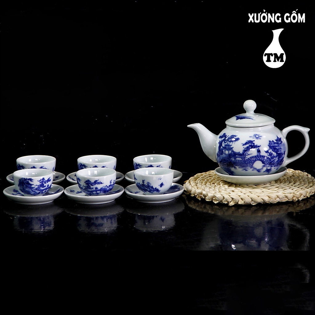 Nhà cửa & Đời sống > Dụng cụ nhà bếp > Dụng cụ pha trà, cà phê || Bộ Ấm Trà Hoa Nhài Men Lam Vẽ Trúc Lâm Thất Hiền, Bộ Ấm Chén Cao Cấp, Bộ Ấm Trà Xưởng Gốm TM Bát TràngCòn hàng