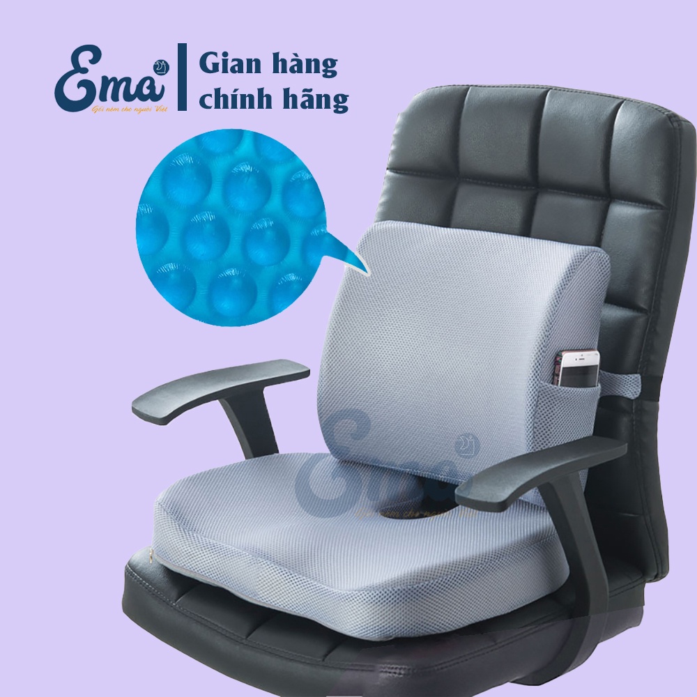 Bộ đệm tựa lưng và đệm lót ghế chống đau xương cụt Ema loại có gel cao cấp cho dân văn phòng, lái xe, sinh viên...