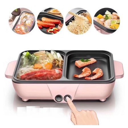 (M22) [Hàng Nội Địa] Nồi Lẩu Nướng Hồng Đa Năng 2 Trong 1 Mini, Bếp 2 Ngăn Cao Cấp - Nồi Lẩu 2 Ngăn Tiện Lợi |gdcm