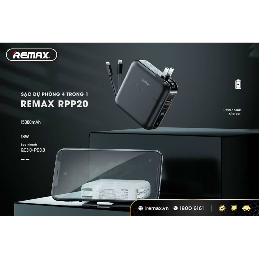 Giới thiệu [Mã 55ELSALE1 giảm 7% đơn 300K] pin Sac dự phòng REMAX RPP20 4 trong 1, hỗ trợ sạc nhanh 18w