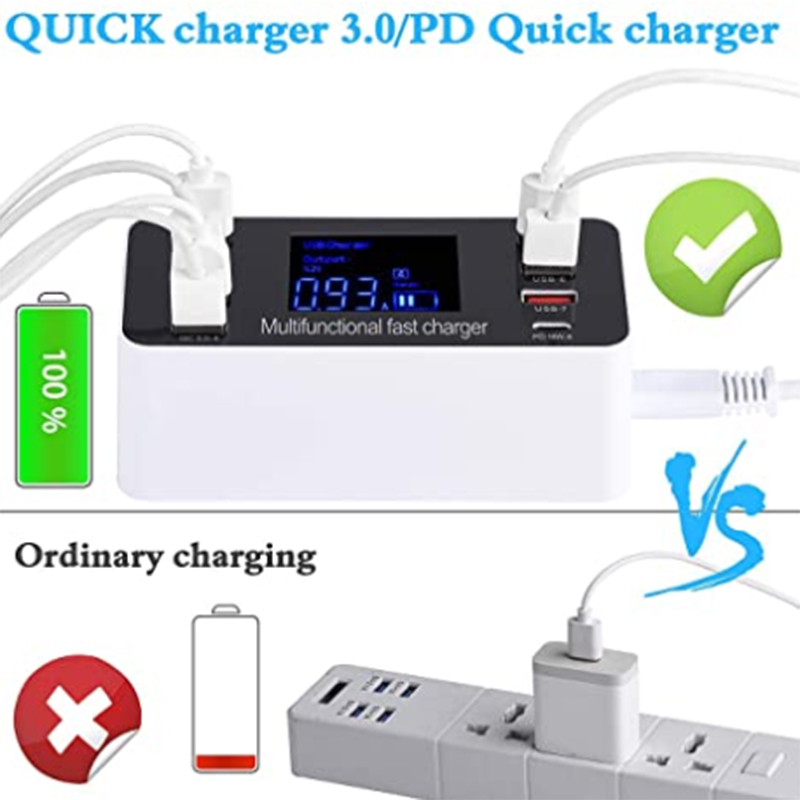Giới thiệu Hỗ trợ sạc nhanh nhiều lỗ, sạc nhanh Android iPhone tape-C LED QC 3.0 và sạc nhanh PD