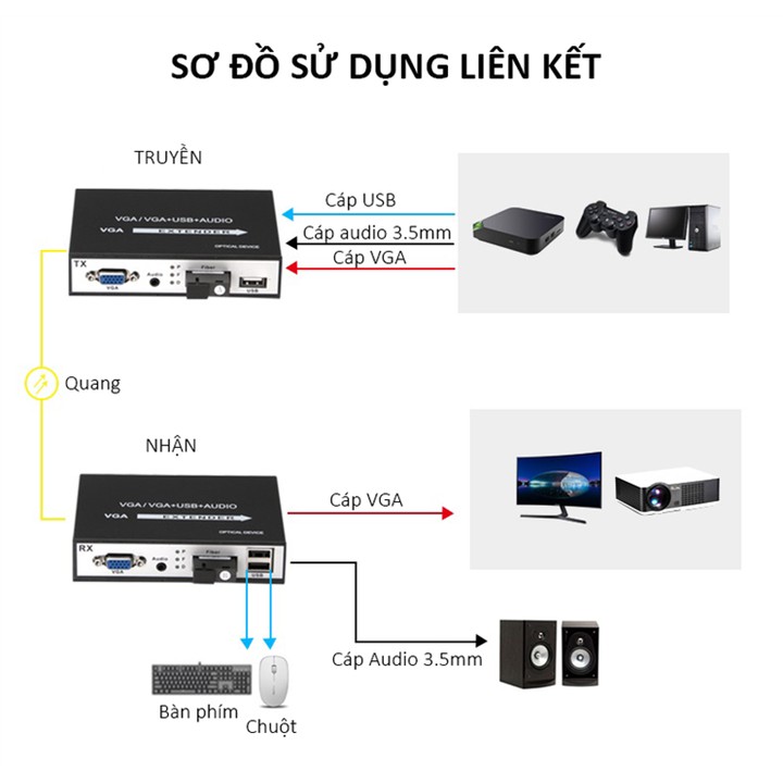 Máy tính & Laptop > Thiết Bị Lưu Trữ > USB & OTG || [Mã 273ELHA100K0 hoàn 7% đơn 500K] Bộ Vga Nối Dài Và Usb Nối Dài Bằng Dây Quang 20Km Có Hỗ Trợ AudioCòn hàng