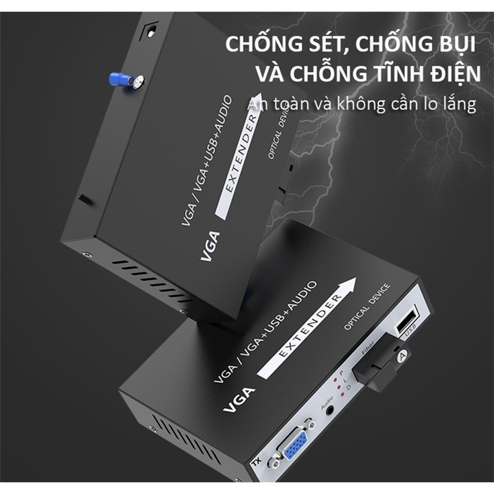 BỘ VGA NỐI DÀI VÀ USB NỐI DÀI BẰNG DÂY QUANG 20KM CÓ HỖ TRỢ AUDIOSỬ DỤNG CHO CAMERA, THIẾT BỊ ÂM THANH, HÌNH ẢNH DVD, L