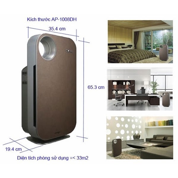 Sở hữu thiết kế hiện đại, màu nâu trang nhã, máy lọc không khí Coway AP-1008DH phù hợp với mọi không gian nội thất. Máy có kích thước nhỏ gọn nhưng độ bao phủ rộng, không tốn nhiều diện tích xếp đặt, phù hợp với phòng có diện tích khoảng 25 - 35 m2.