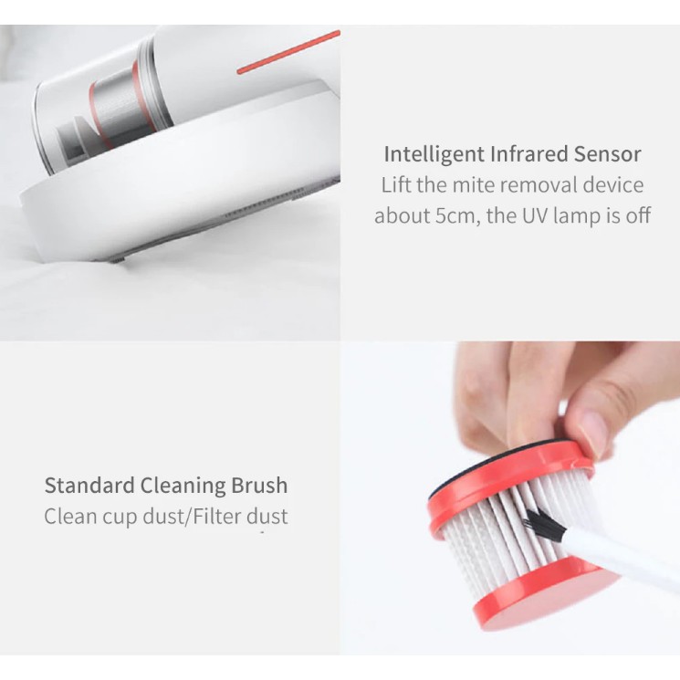 - Hút bụi khử khuẩn giường, nệm/thảm/sofa với tia UV diệt khuẩn, hút sâu và mạnh với lực hút 12kPa. Tỏa ra hơi nóng 50*C và bộ rung 8000 lần/phút liên tục tác động dễ dàng hút mọi bụi mịn ẩn sâu bên dưới các lớp vải dày (Ga giường, nệm, thảm, gối...)- Dễ dàng thay đổi đầu hút để trở thành máy hút bụi cầm tay thông thường vô cùng tiện lợi và hiệu quả