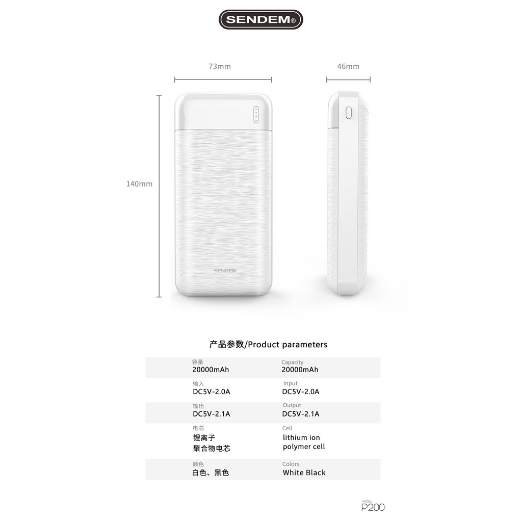 Giới thiệu [Mã 155ELSALE giảm 7% đơn 300K] Pin sạc dự phòng 20000mAh SENDEM P200 DP01