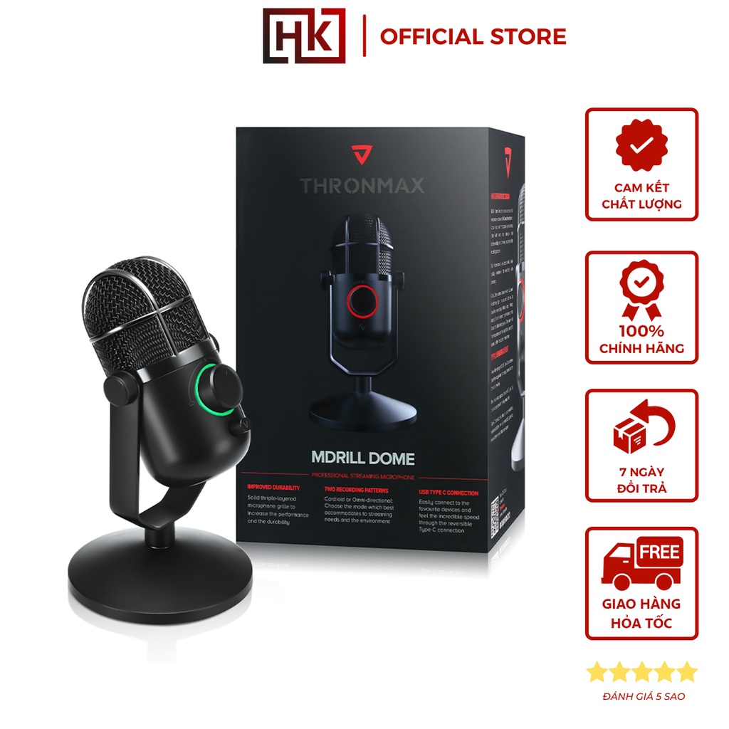 Microphone Thronmax Mdrill Dome M3 Plus Jet Black 96kHz có bộ điều khiển âm lượng thông minh, 2 Condensers Capsules chất lượng cao, nút tắt tiếng, đầu ra tai nghe không có độ trễ.