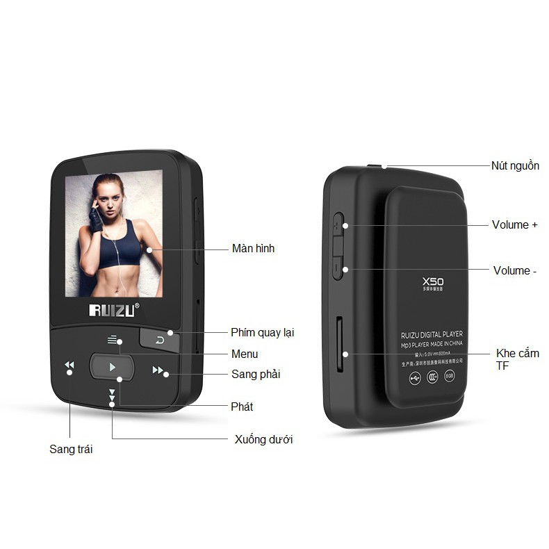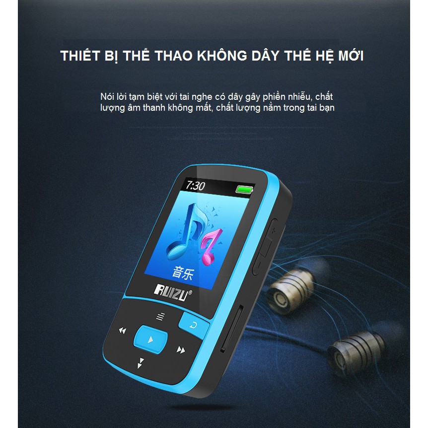TÍNH NĂNG CƠ BẢN- Máy nghe nhạc bluetooth Ruizu X50 có kiểu dáng thể thao, phù hợp với các hoạt động thể chất ngoài trời.