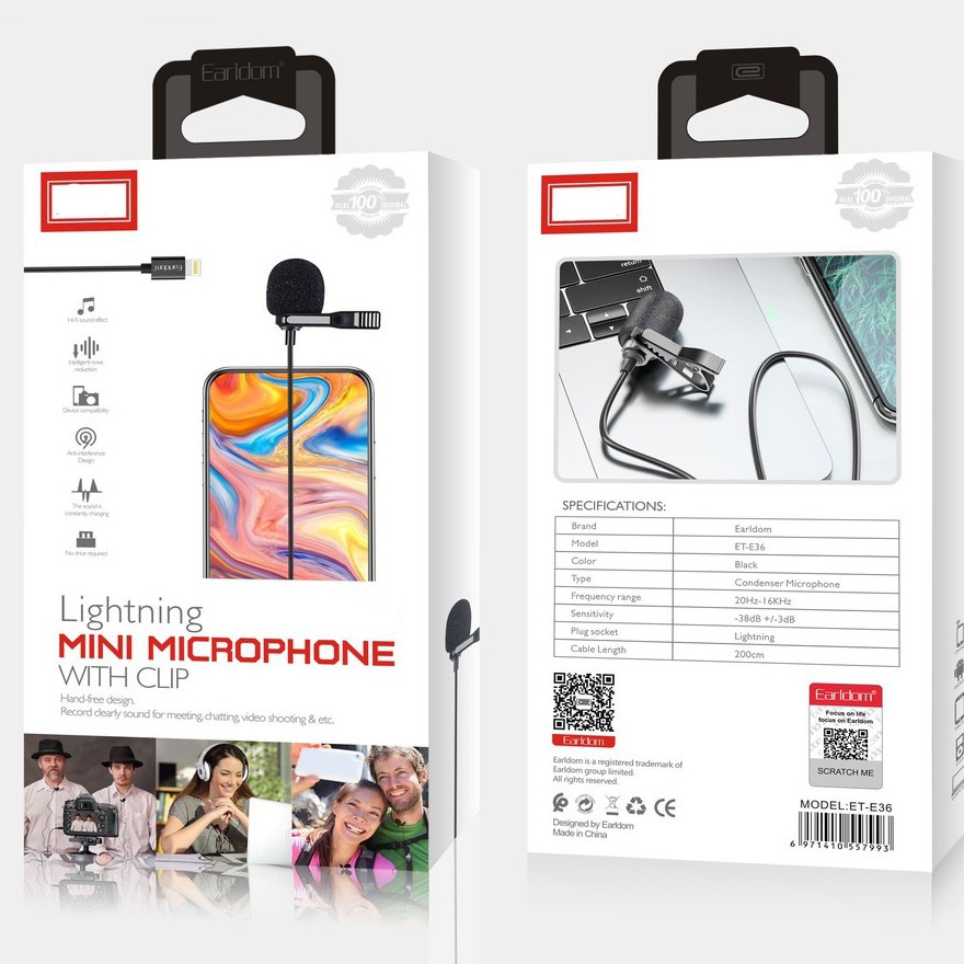 Mic thu âm mini cho điện thoại ET-E36 , mic chính hãng cao cấp- Với Thiết kế nhỏ gọn màu đen Mic thu âm gắn gài bên người cho iPhone, iPad chất lượng cao tiện lợi và dễ sử dụng cho người dùng smartphone.