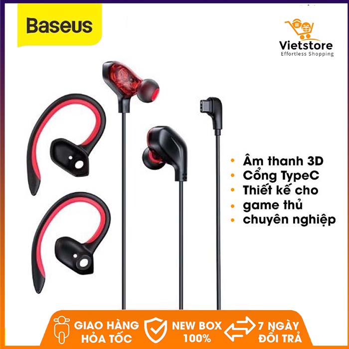 Tai nghe nhét tai chơi game chuyên dụng C18 dây dài 1.2m kết nối Type-C- Thương hiệu: Baseus