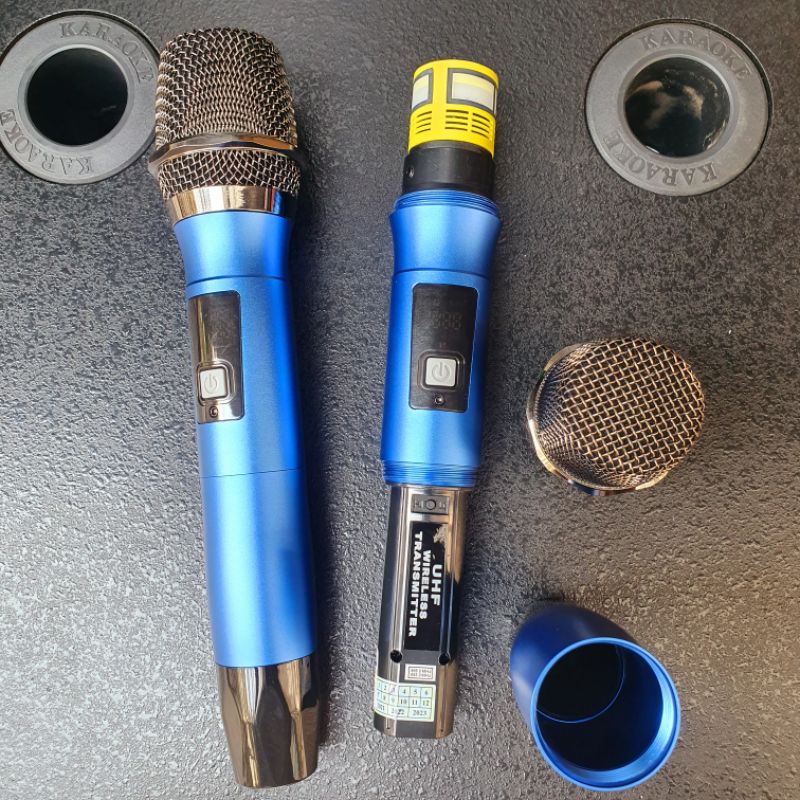 Micro loa kéo Có thể độ cho vang cũng như âm ly nhôm nguyên khối sóng UHF xa 30M đầu mic nhẹ sét đổi tần số- Thay cho mọi loa kéo trên thị trường 2 mic 1 bo thu nguồn 5 đến 9v