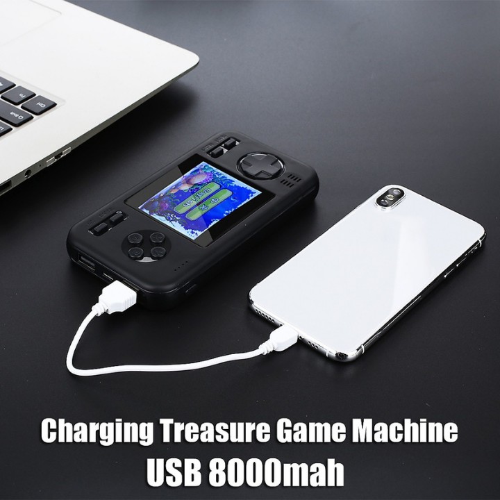 Máy chơi game kiêm sạc dự phòng 8000mAh cực trâu bò - Trang bị màn hình màu LCD 3-inch chơi game cực đã. Bảng điều khiển 4 nút hệt như game máy game thùng, . Có thể truyền hình ảnh, âm thanh lên TV thông qua cổng AV.